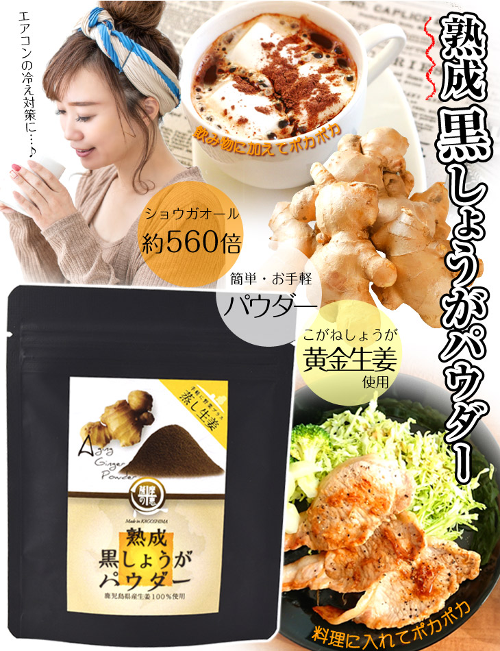 ●商品情報:九州産黄金生姜を発酵。黄金生姜を蒸し&乾燥で黒くなるまで熟成発酵することで、ポカポカ成分ショウガオールが劇的に増加!
