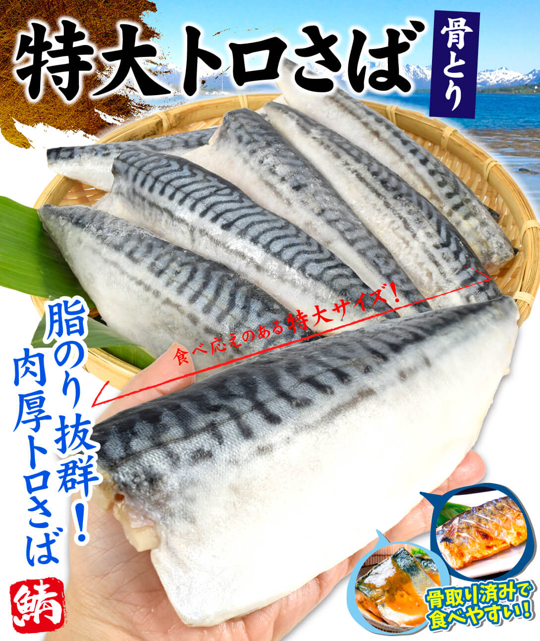 ●商品情報:骨取り済みでお子様も安心!脂のり抜群・肉厚のトロさばを、便利な半身フィレでたっぷりお届け。焼鯖、煮つけやフライにも。