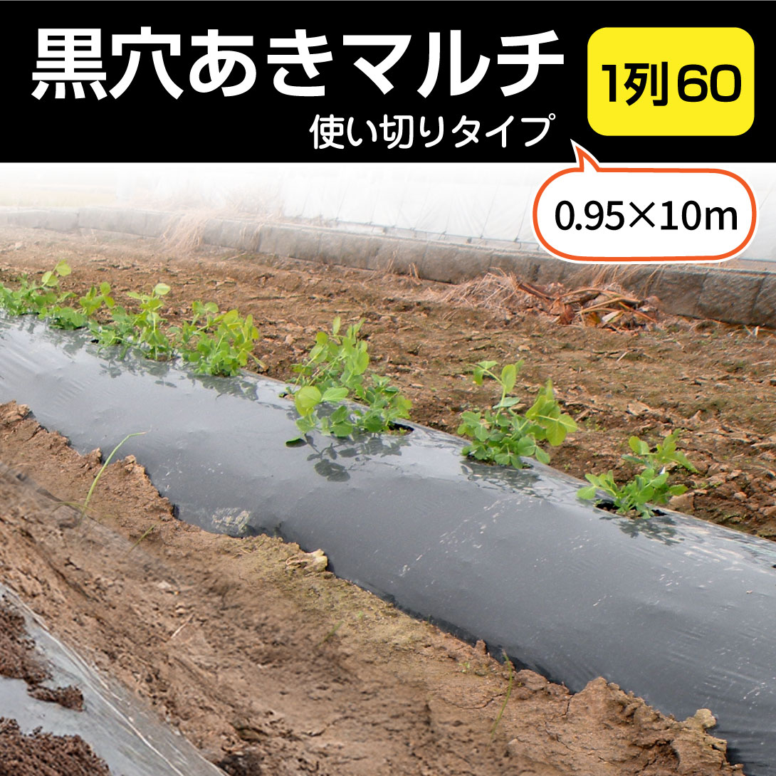 【メール便 送料込】 使い切り マルチ 黒穴あきマルチ 1列60 (0.95×10m) 1枚 農業用マルチシート 農ポリ 少量 農用 マルチング 被覆資材 ポリエチレン