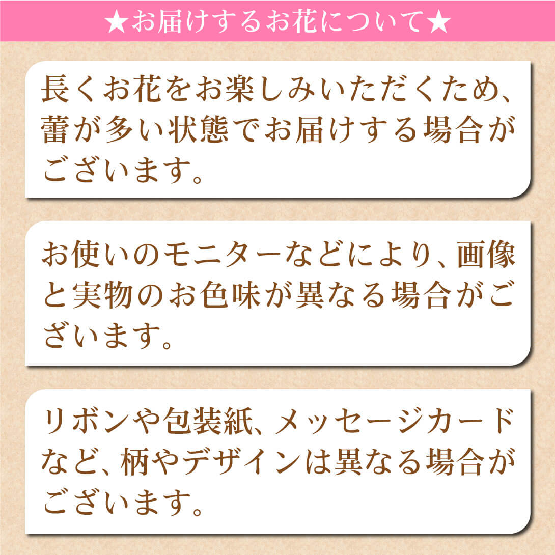 花を長くお楽しみいただくため蕾が多い状態でのお届けの場合もございます。
