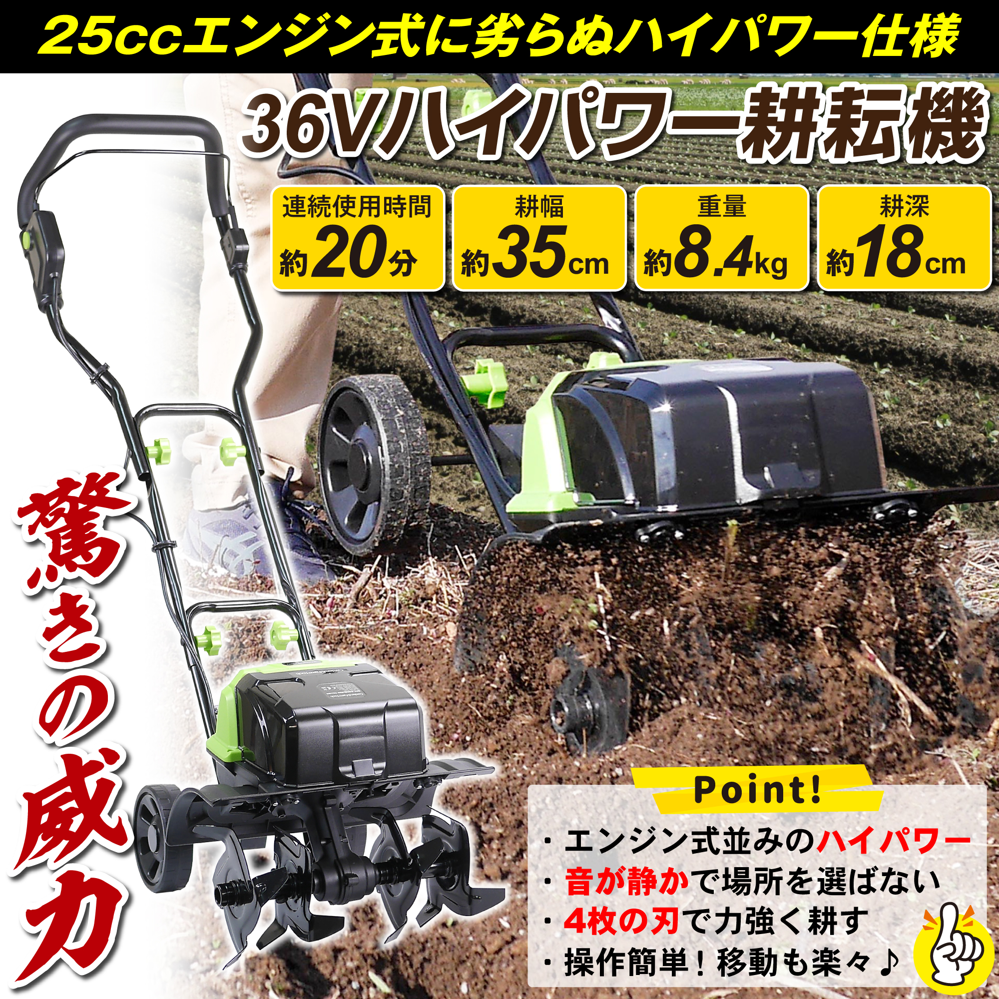 充電式 36Vハイパワー耕耘機