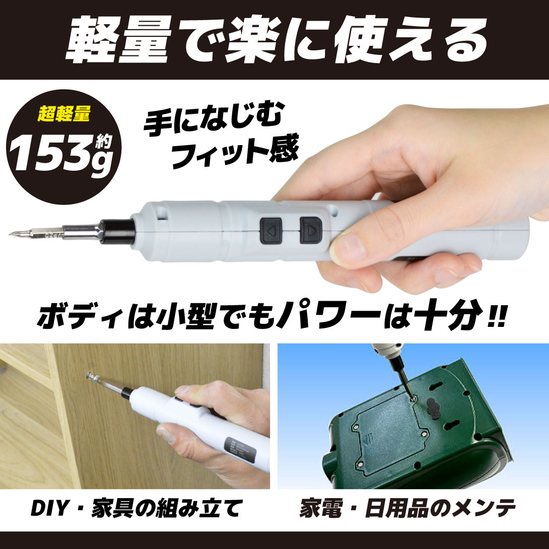 電動ドライバー 充電式 超軽量 小型 ビット付き ドライバードリル USB充電式 コードレス ドライバーセット 磁石付き 軽い 電動工具 初心者向け DIY