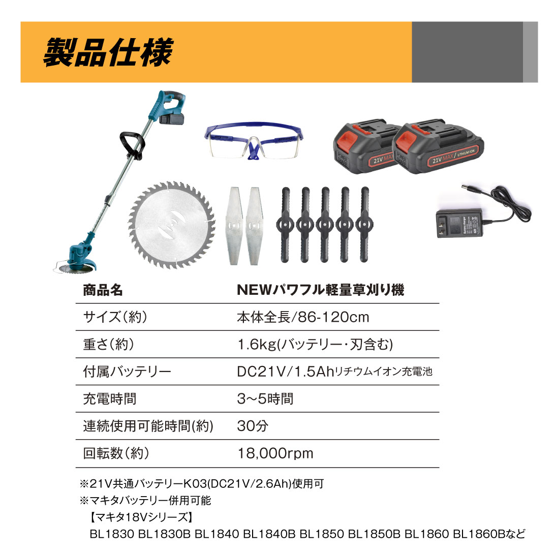 草刈機 刈払機 充電式 21V NEW充電式パワフル軽量草刈機 マキタバッテリー互換 草刈り機