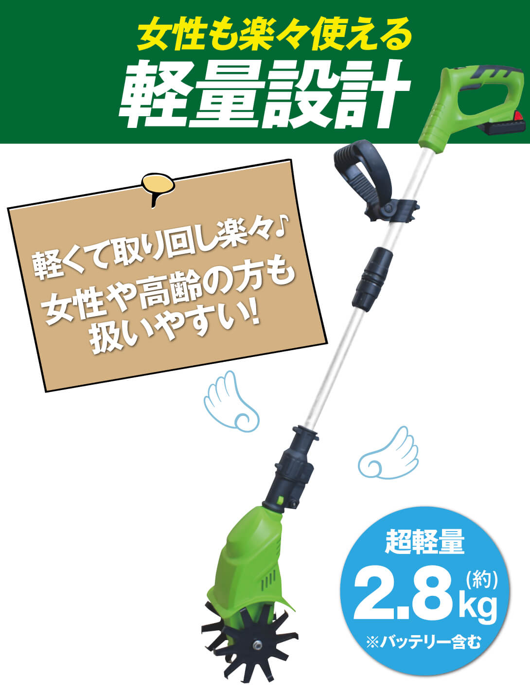 耕運機 耕うん機 家庭用 充電式 21V 充電式耕耘機 1台 コードレス 家庭用 マキタバッテリー対応 家庭菜園 静音 軽量