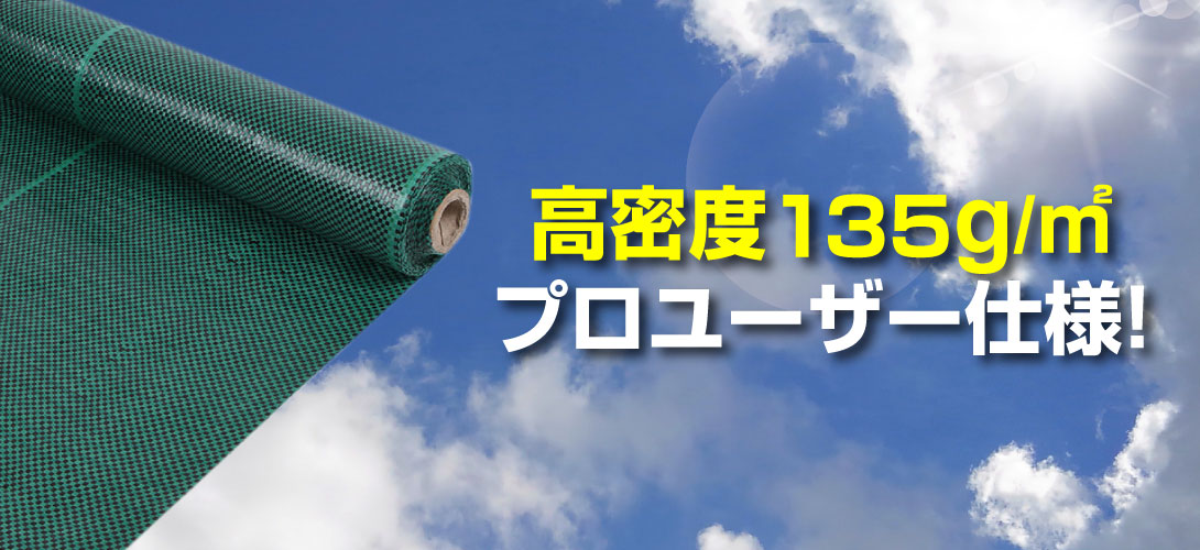 防草シートは厚みだけでなく、重さ(目付量)も重要なポイント! 本製品は1m2あたり135gと高密度だから遮光性&耐久性◎