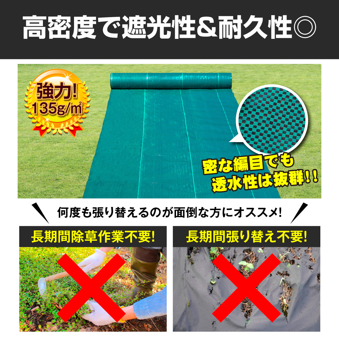防草シート4年目安・濃緑 防草シート 農用シート 除草 雑草 芝生 草 DIY 高密度 135g UV剤 厚み0.35mm 砂利下 人工芝