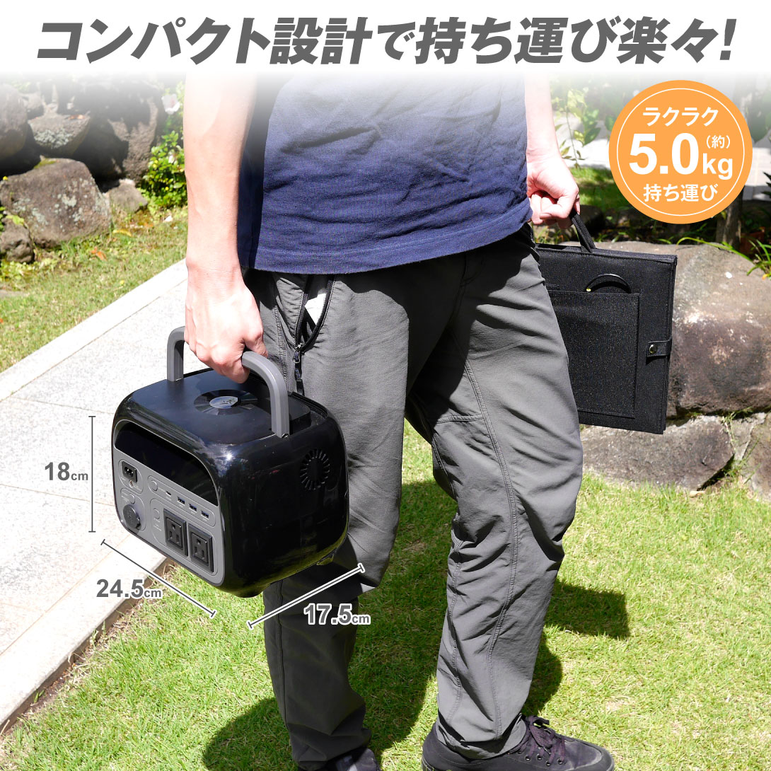 本体重量5.0kg+ソーラーパネル1.5kg で持ち運びやすい!