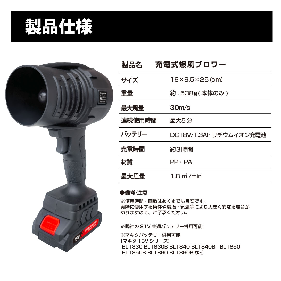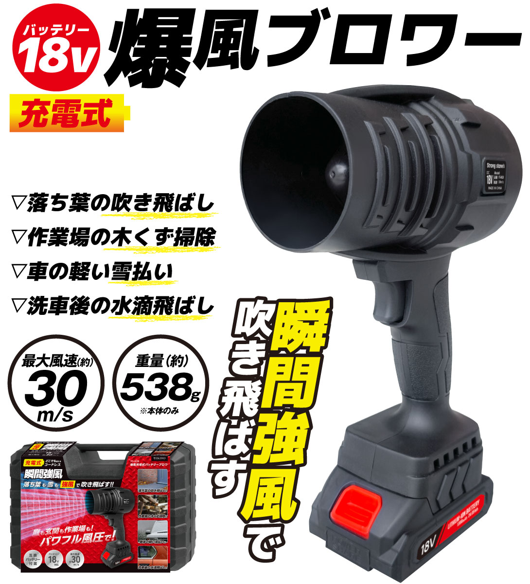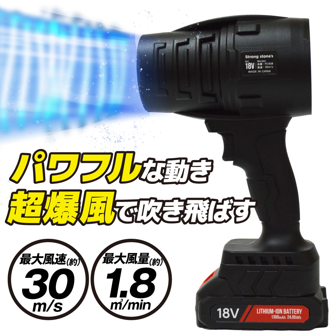 ブロワ 充電式 ブロア 小型 軽量 お手軽 爆風 ブロワー 1個 ブロアー 洗車 落ち葉 除雪 ホコリ 18V コードレス 国華園