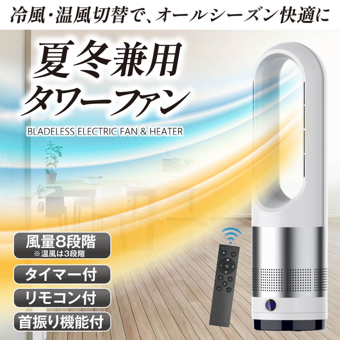 夏冬兼用タワーファン 1台 冷暖兼用 羽なし扇風機 タワーファン 扇風機 羽根無し 羽根なし 首振り 小型 軽量 静音 リモコン付 1個 国華園