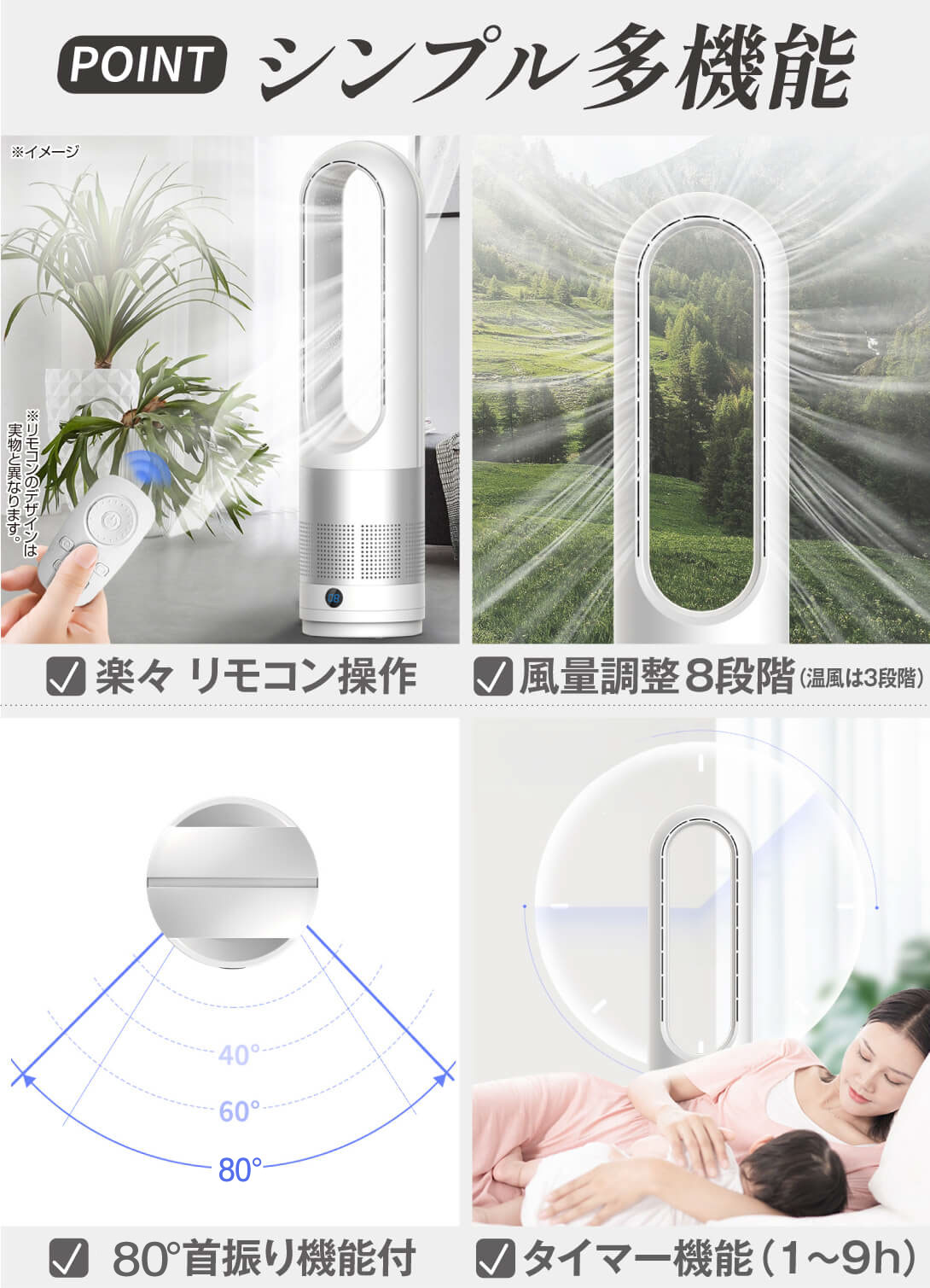●風量調整可(冷風8段階・温風3段階)