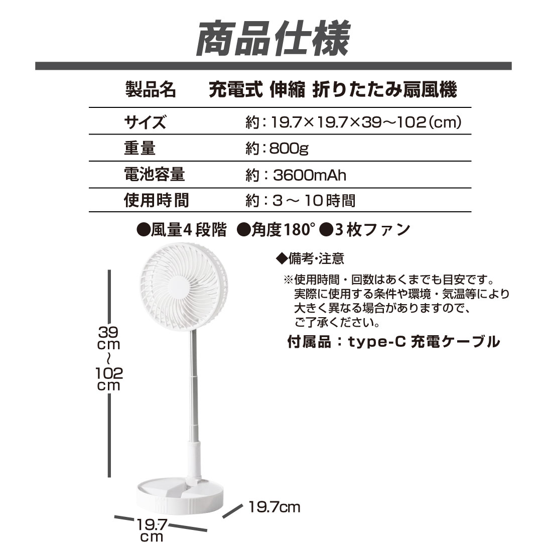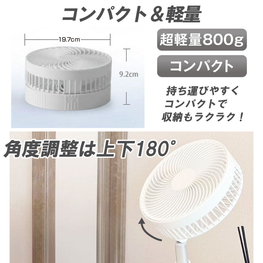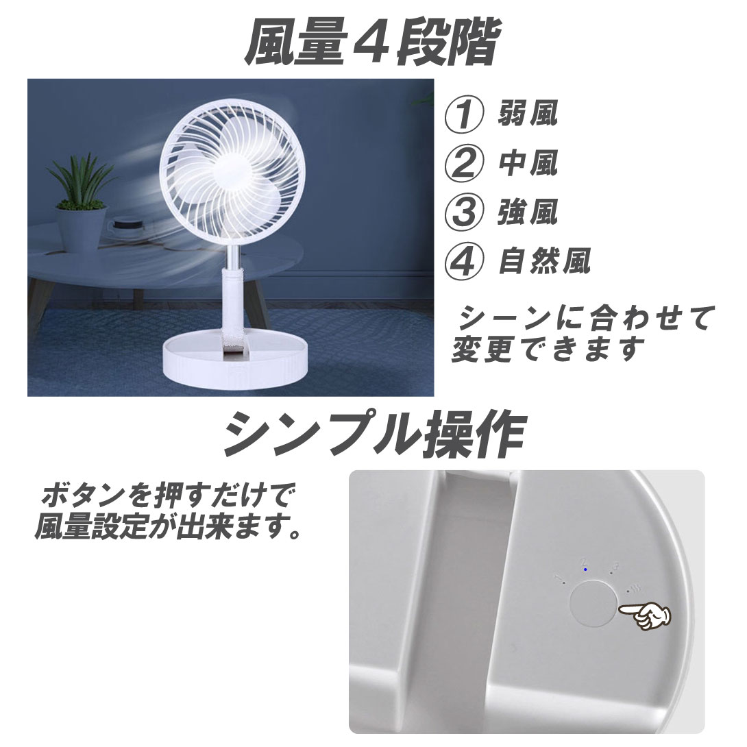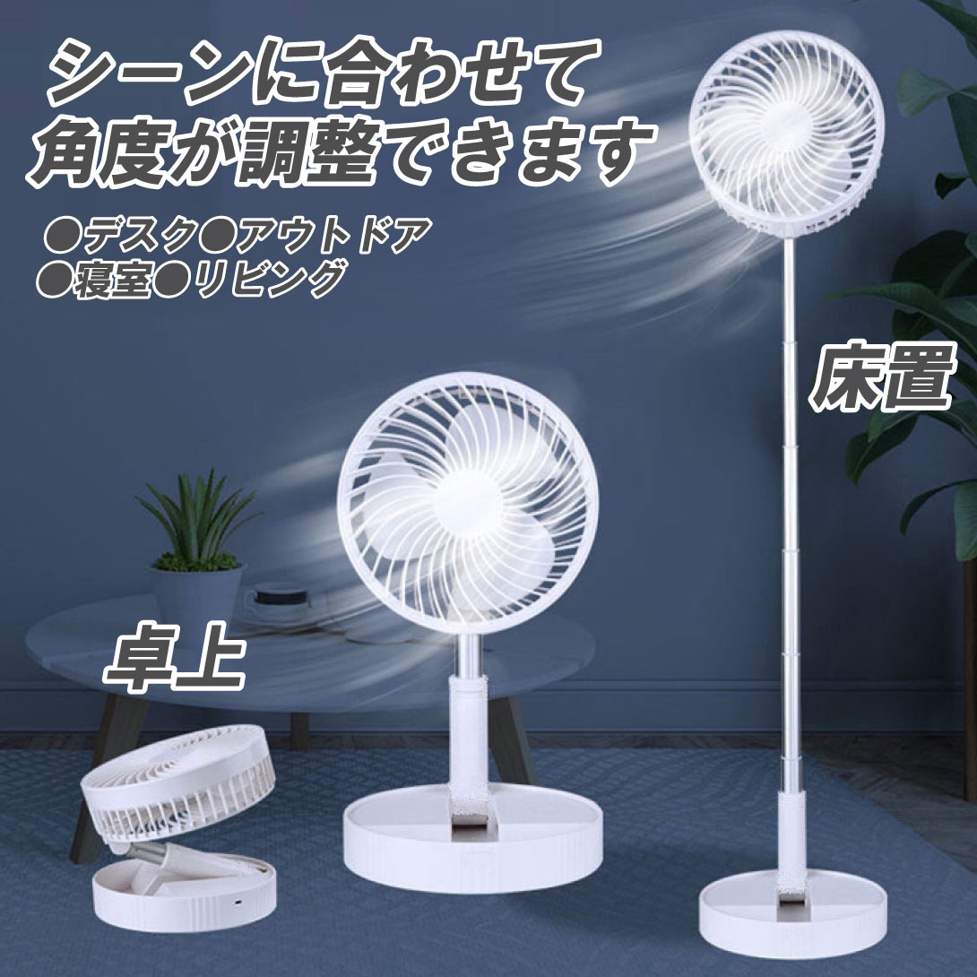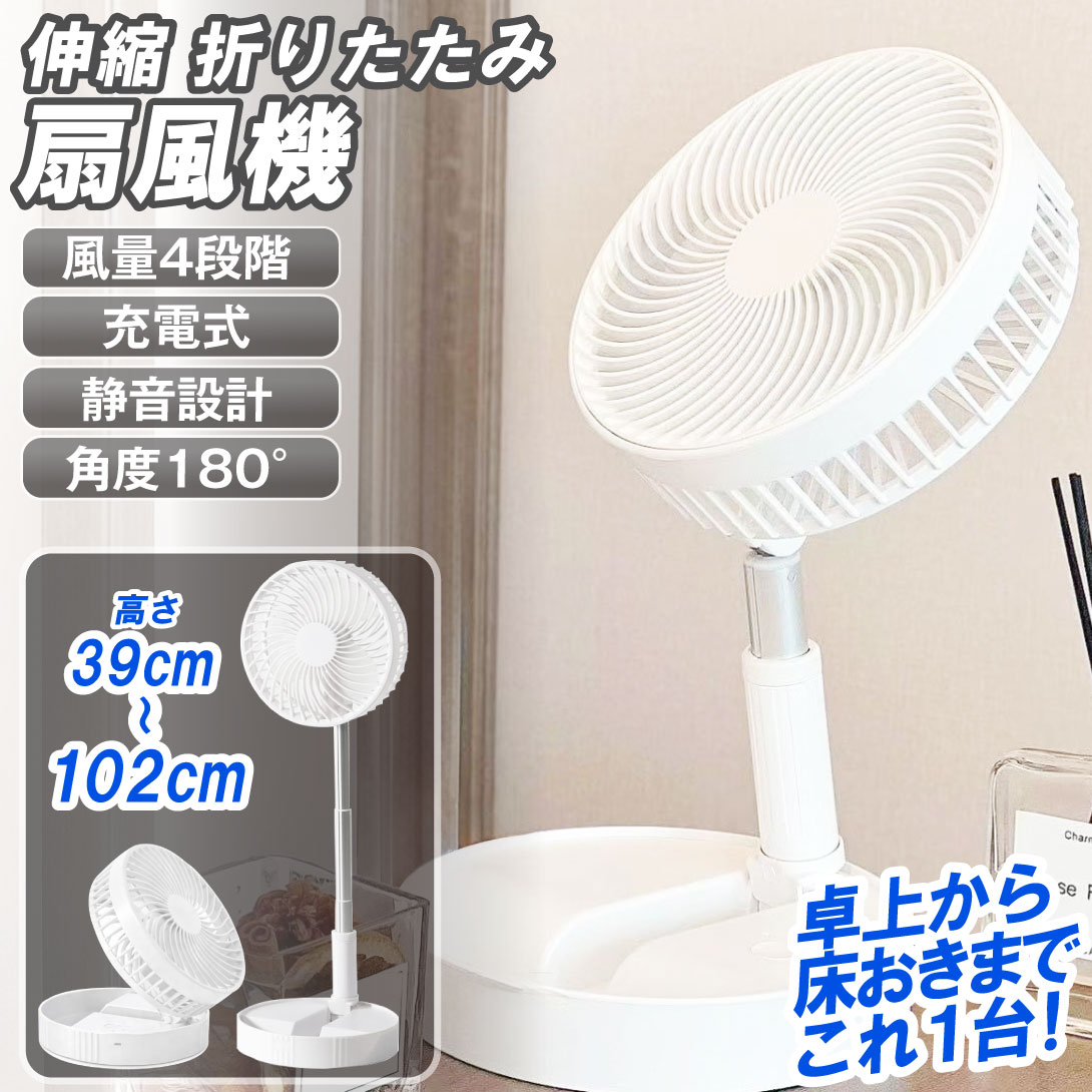 扇風機 伸縮式 折りたたみ 充電式 USB コードレス 静音 卓上 スタンド ホワイト
