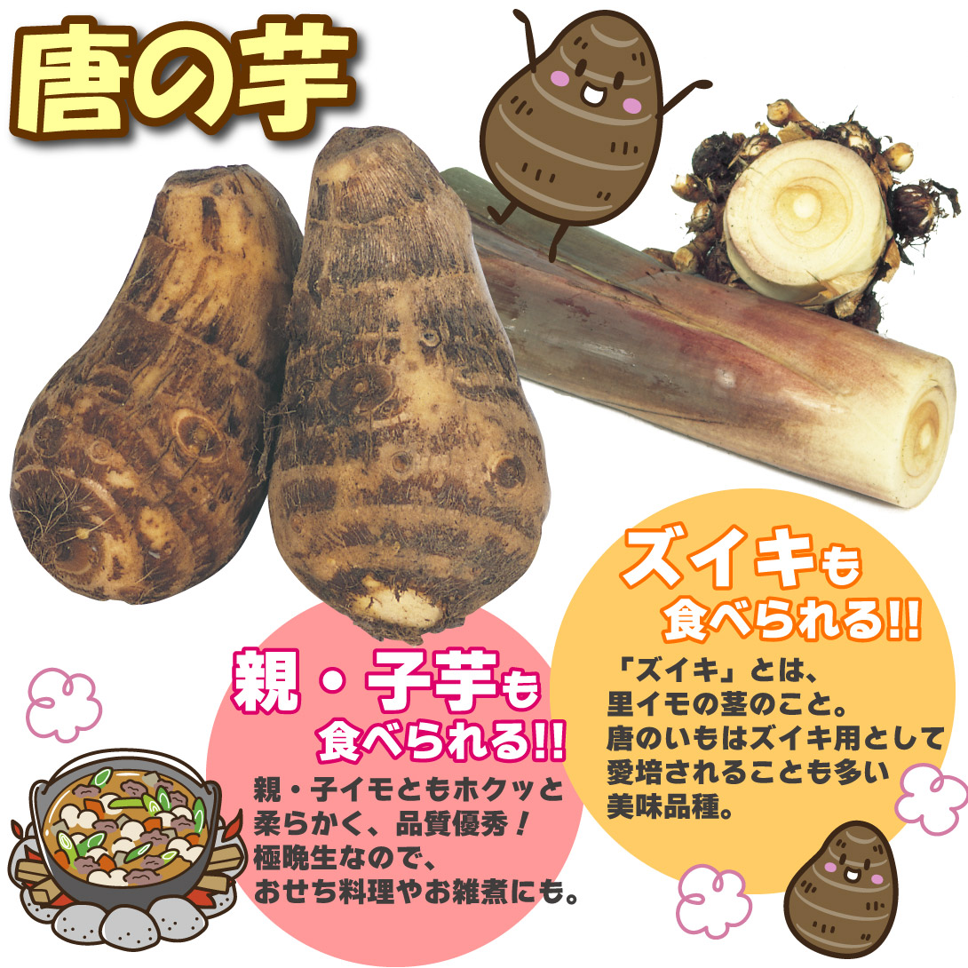 ●商品情報:親・子イモともホクッと柔らかく、品質優秀なさといも。極晩生なのでおせち料理やお雑煮にもどうぞ。