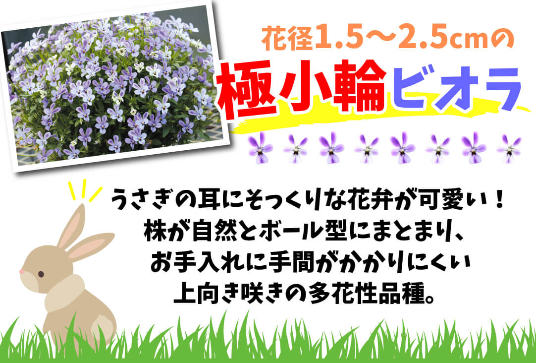 小さいうさぎのような花形がとっても可愛いおすすめのビオラです。