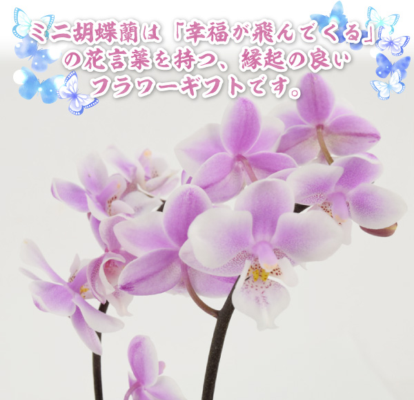 ミニ胡蝶蘭は、普通の胡蝶蘭よりも小型で、花茎が短く、花の直径が小さいという特徴があります。