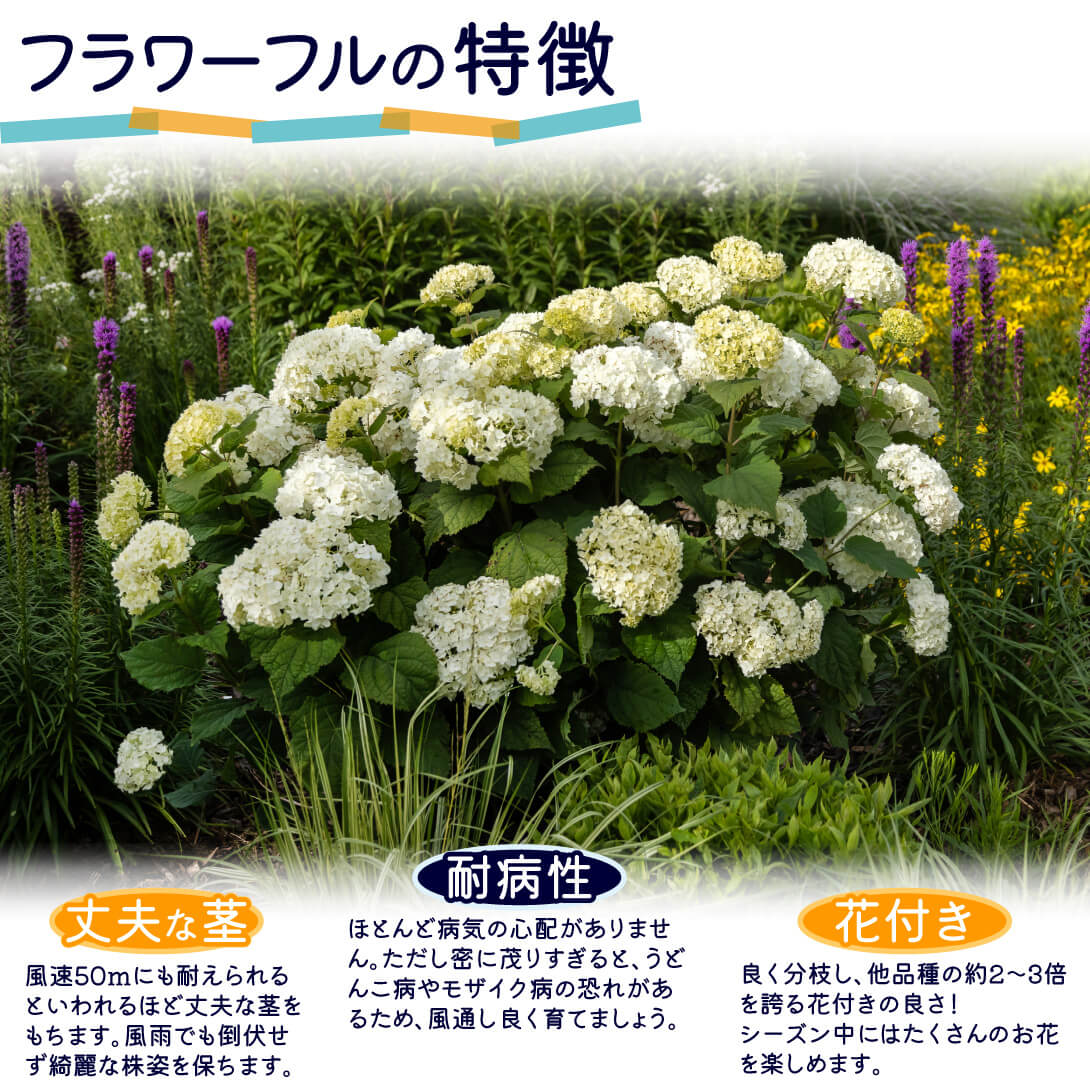 風雨に負けない丈夫な茎が自慢!! アメリカアジサイの苗「アナベル フラワーフル」