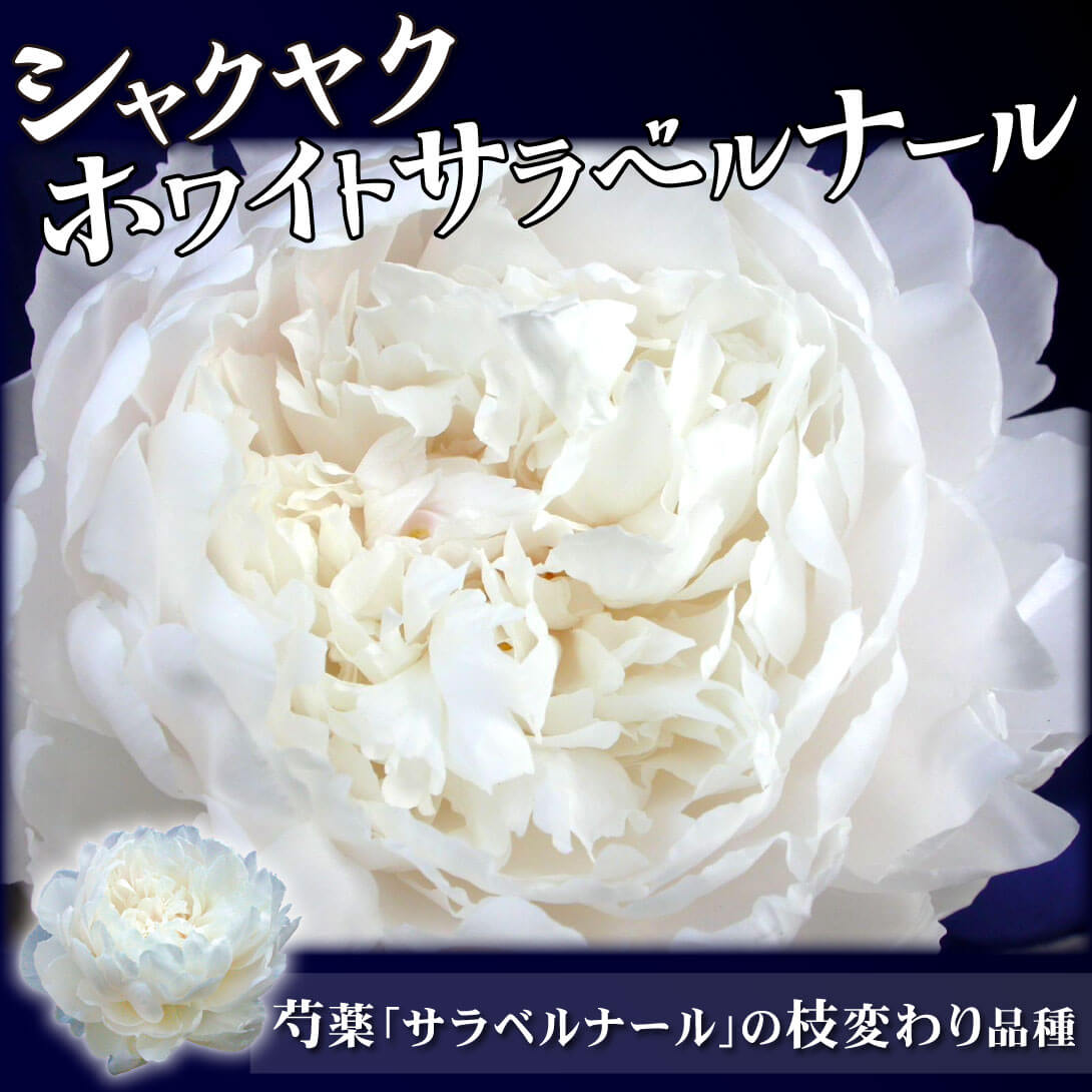 「ホワイトサラベルナール」は、豪華芍薬の代表品種 ピンクの「サラベルナール」の枝変わり品種です。