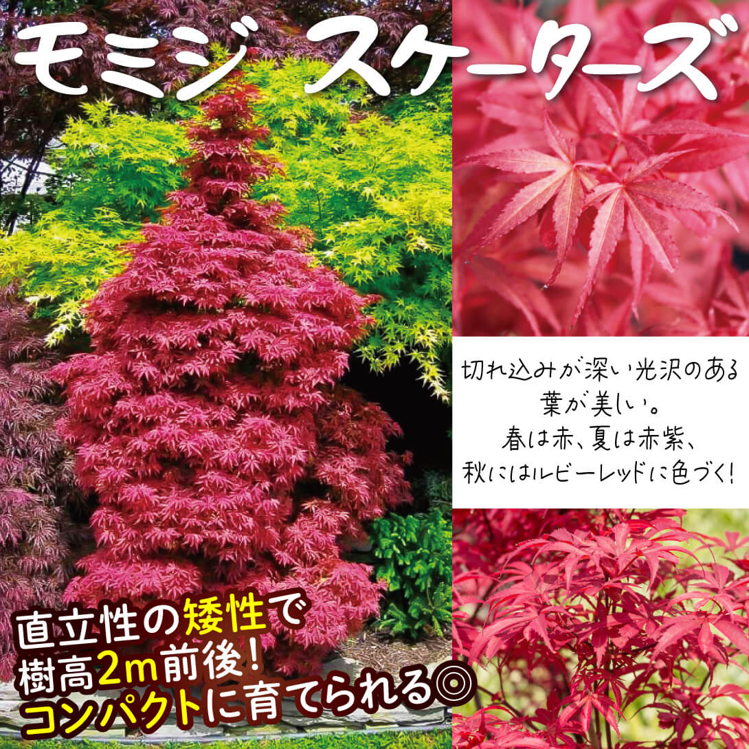 ●商品情報:切れ込みが深い光沢のある葉が魅力! 春は赤、夏は赤紫、秋にはルビーレッドに色づく葉色も綺麗で、特に夏に美しくなります。樹形は直立性で、樹高2m前後に育つ矮性品種です。