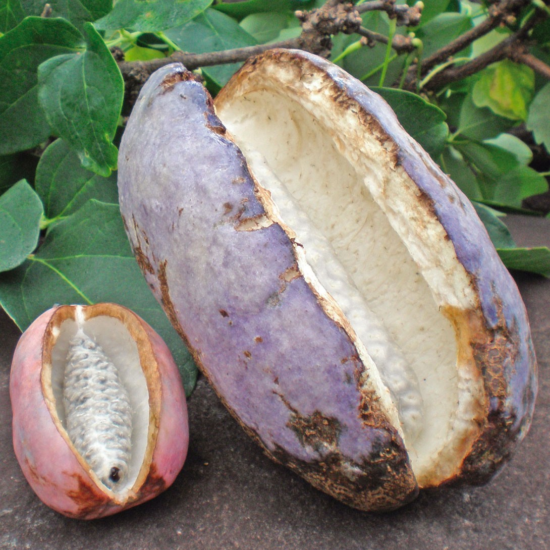 おばけアケビ:果長20cmの巨大アケビ! この大きさでも皮まで美味しい。(三葉)