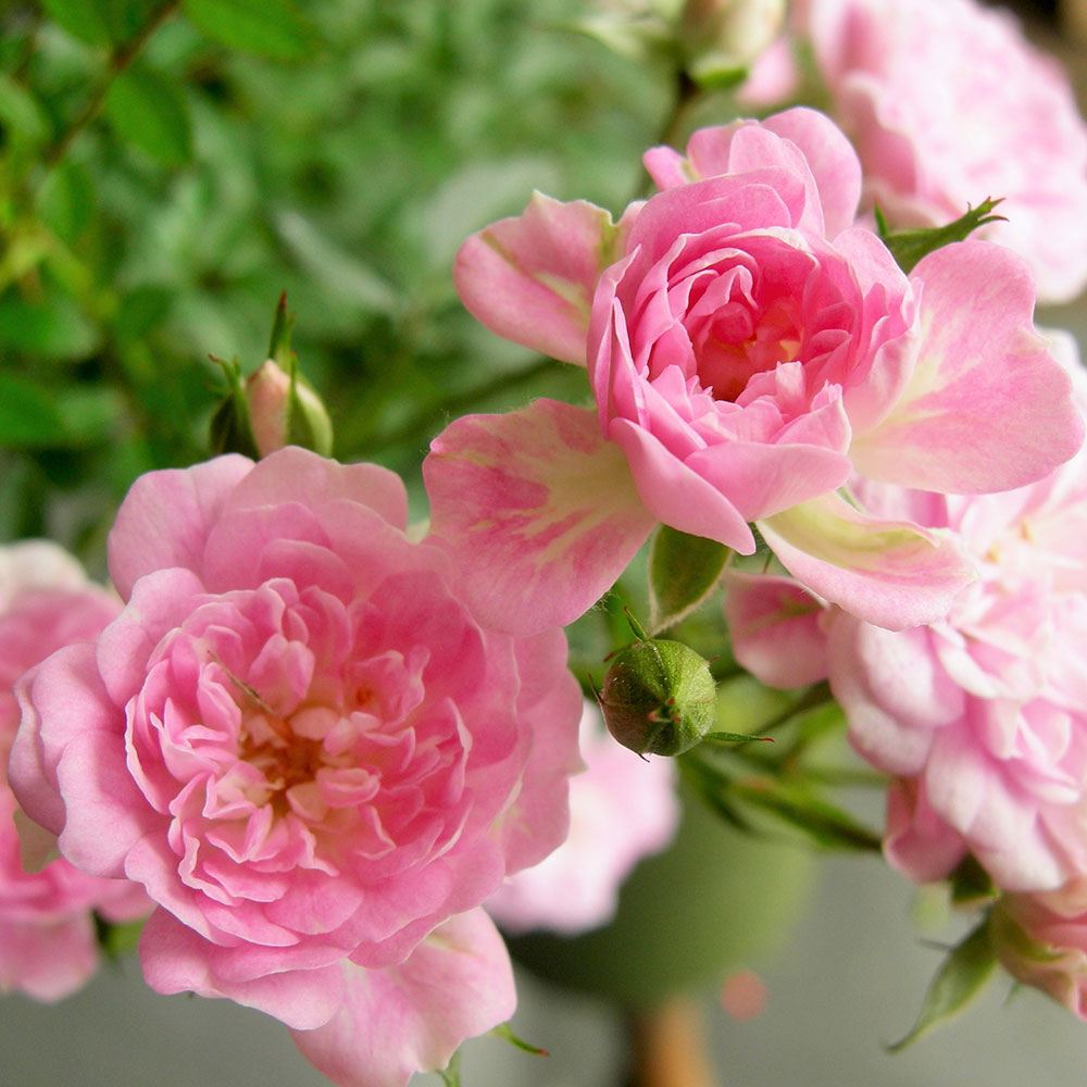 「舞姫」は柔らかい花色のミニバラです。房咲きで花つきよく、花もちも良い。耐病性もあり育てやすい。