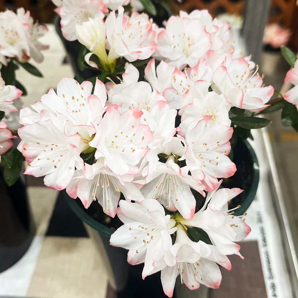 白とピンクのバイカラーが可愛い小輪花をたくさん咲かせるツツジ。