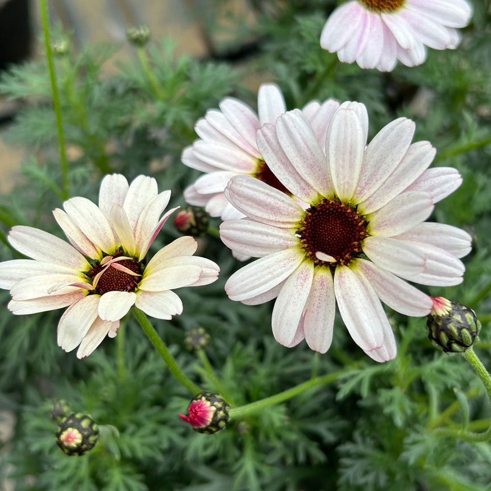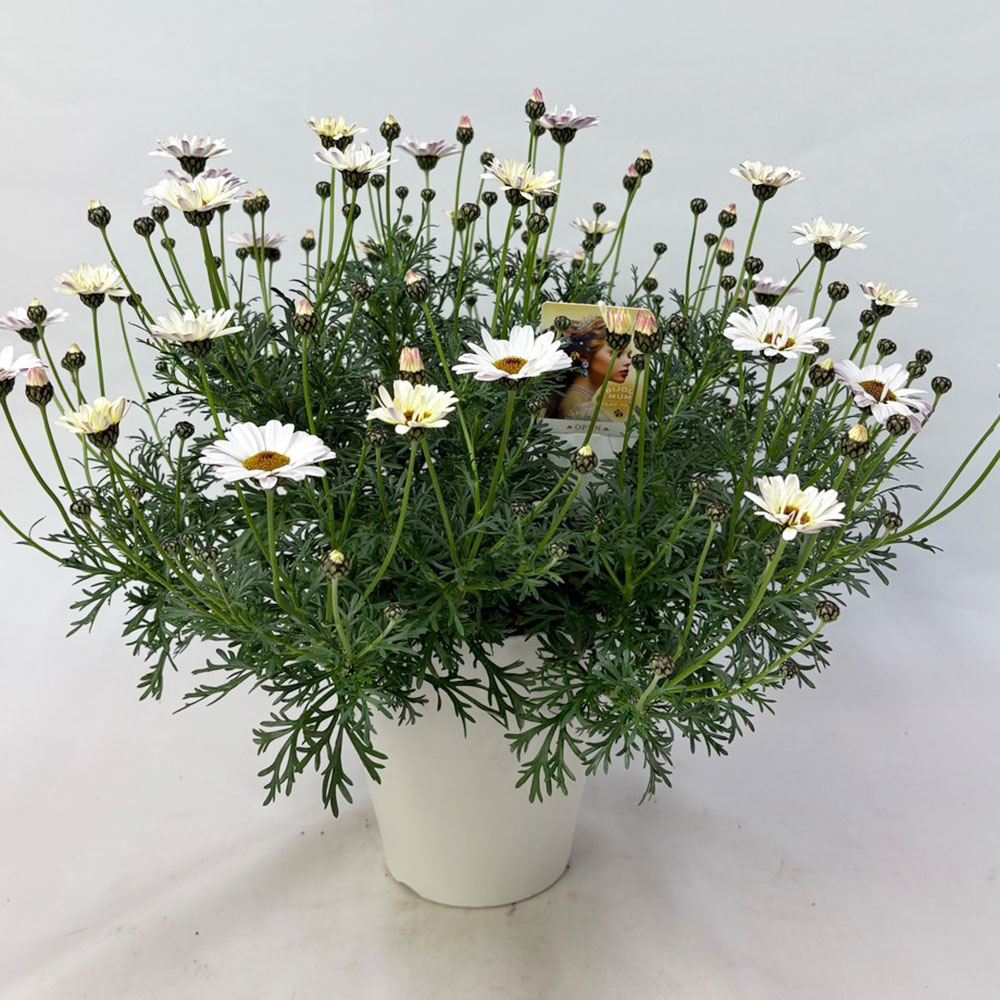 ローダンセマムの耐寒性と、マーガレットの長い開花期間や花つきを受け継ぐいいとこどり。