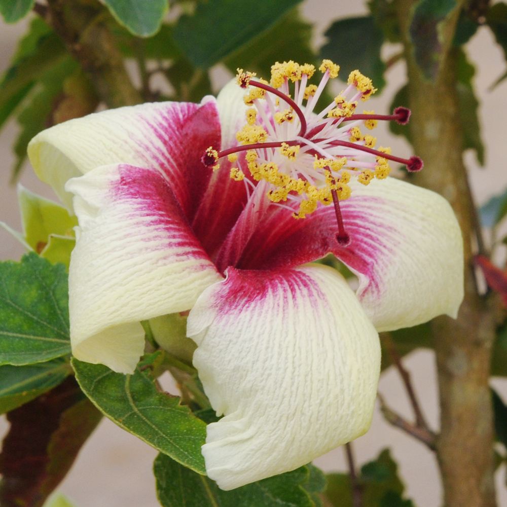オーストラリア原産の絶滅危惧種。短日性植物なので、開花は主に冬から春になる珍しいハイビスカスです。(まれに夏に開花することもあります)
