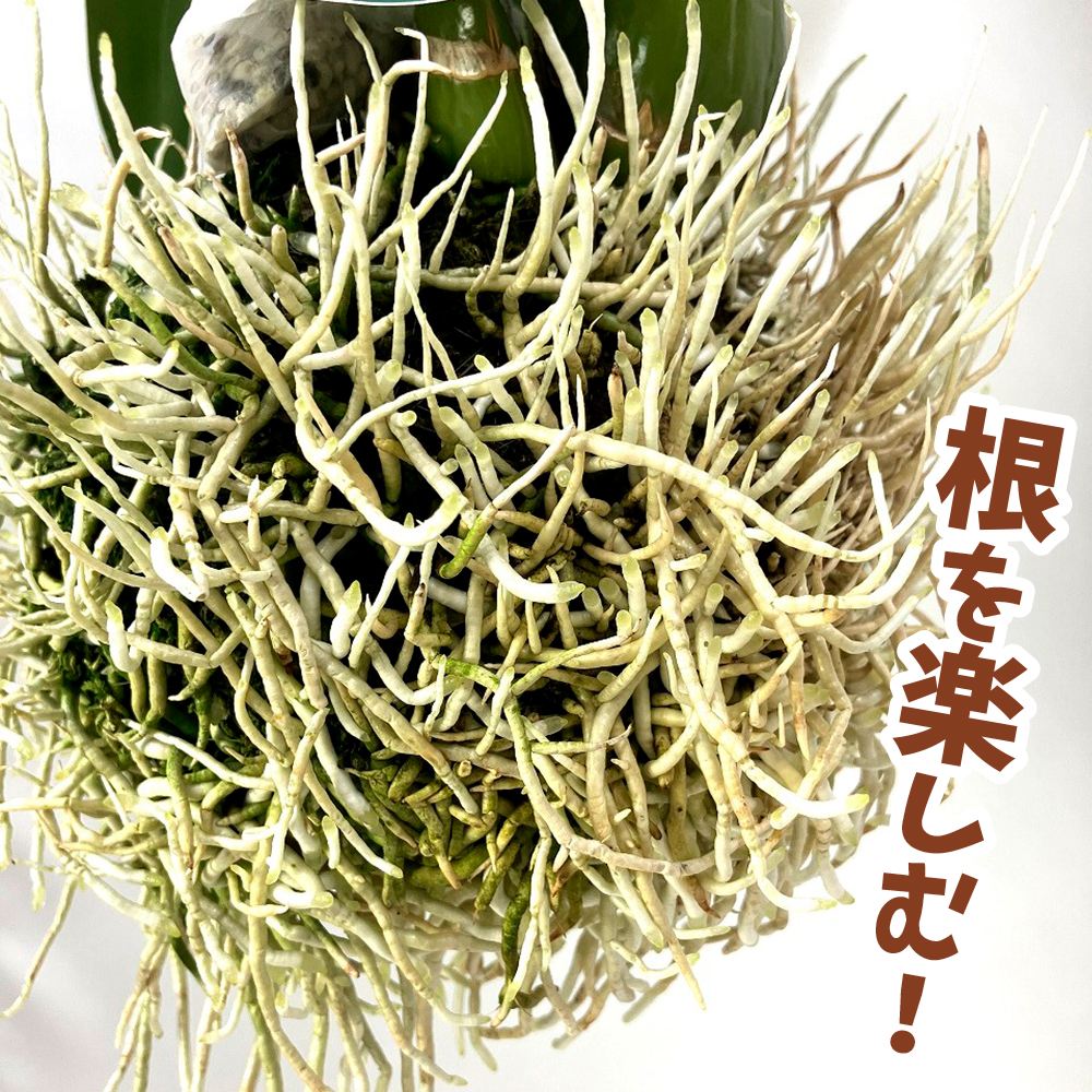 鮮やかな葉とむき出しの根が特徴的で、空中に吊り下げて「根を楽しむ」新感覚のグラマトフィラム。観葉植物のように楽しめます。