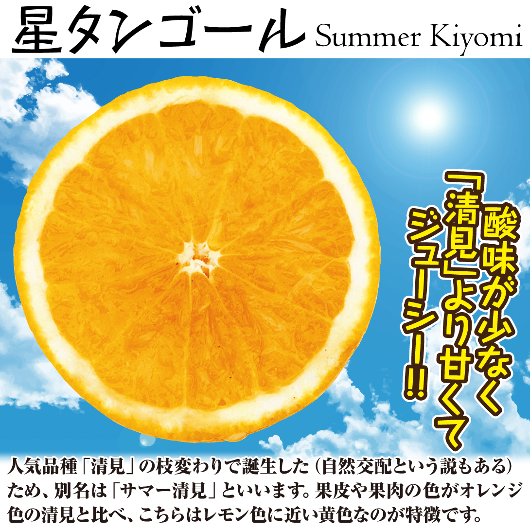 ●商品情報:別名「サマー清見」。じょうのうが薄く食べやすいのに加え、酸味が少なく、「清見」より甘くてジューシー! 果重約200〜250g。