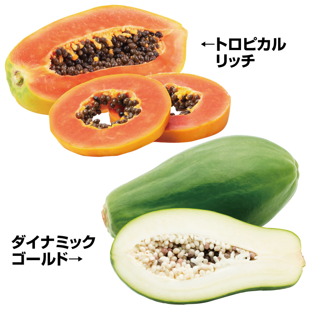 トロピカルリッチ:果重2kg以上になる大玉パパイヤ。肉厚でしっかりとした果肉は、甘味もあり美味しい! フルーツパパイヤに。