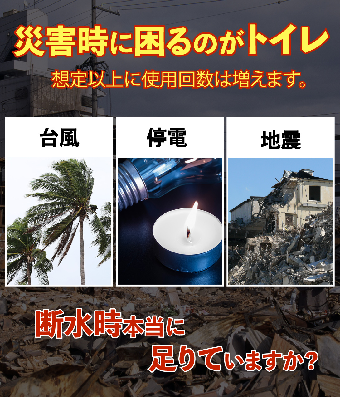 実は災害時に最も困るのはトイレかもしれません。