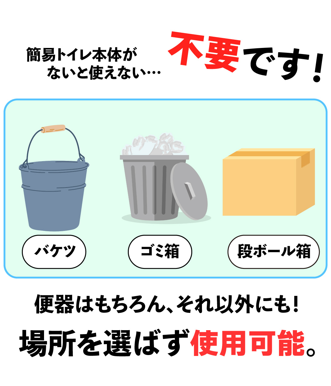 トイレがなくてもOK!箱やゴミ箱、バケツなどがあれば使用可能!