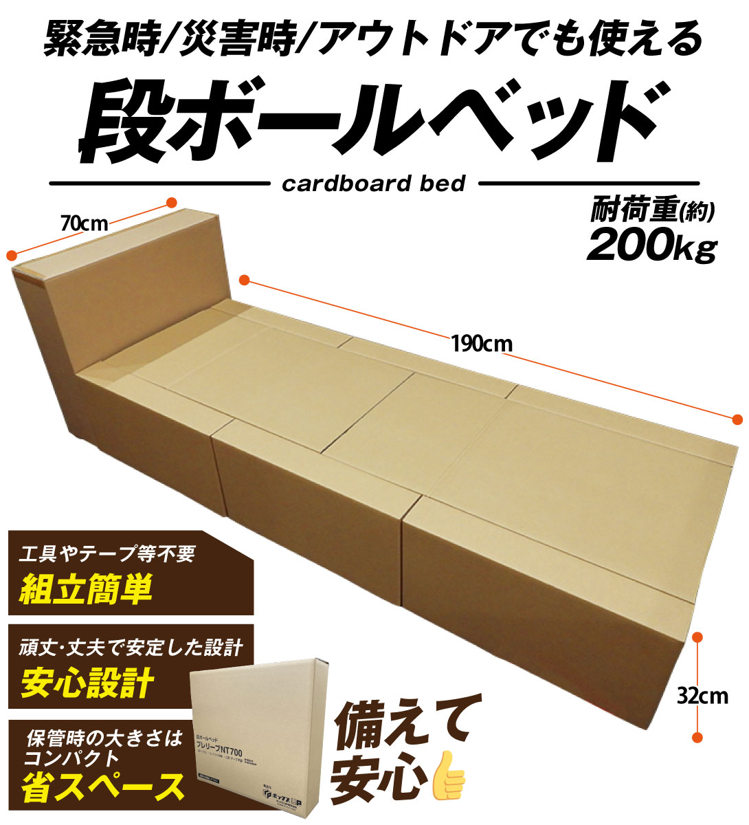 段ボールベッド 緊急災害時用 非常用ベッド コンパクト収納 工具不要 アウトドア 安心設計 1個 国華園