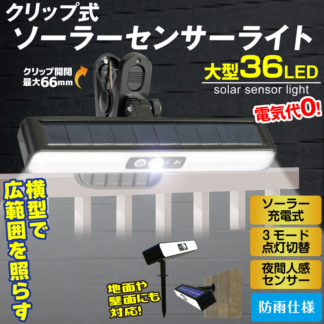 ソーラーライト 庭園灯 センサー 屋外 led クリップ式横長照らすくん 2個 防水 白色 暖色 ソーラー 防犯 IP65 明るい ガーデンライト 自動点灯 国華園