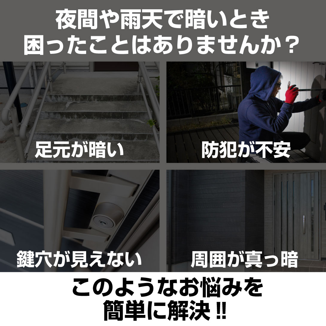 ベランダやお庭・ガレージなど、夜間の暗いところに取り付けることで、作業灯や防犯灯にも◎