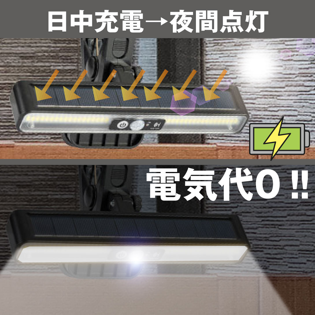 ソーラー充電式なので電気代0円!配線不要で設置ラクラク
