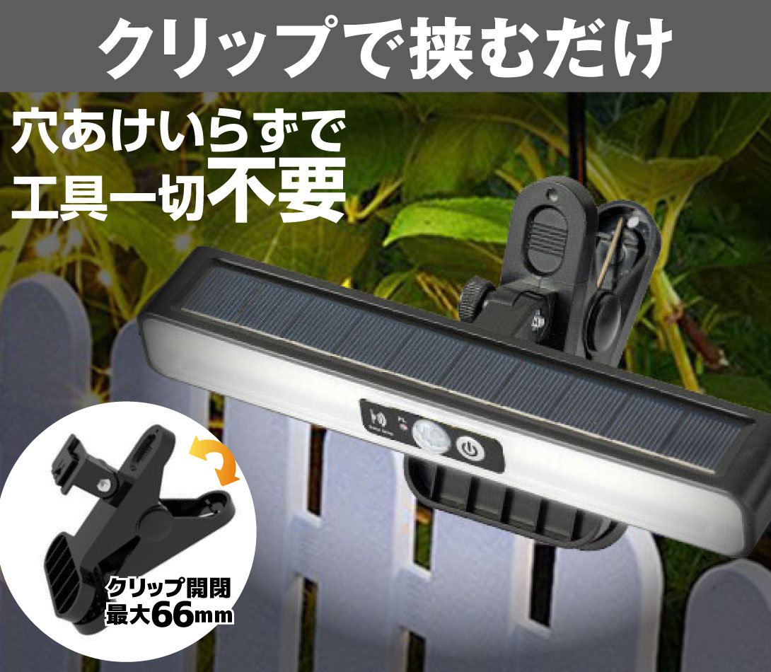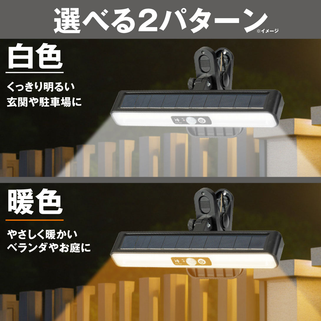 クリップ式 ソーラーライト32LED 横型照らすくん 2個 白色/暖色