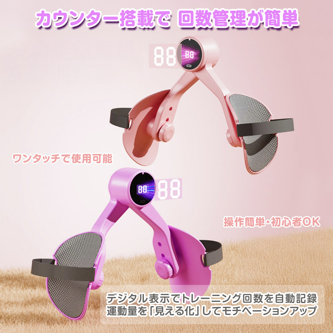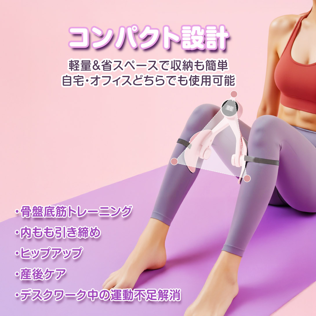 自宅で手軽に骨盤底筋・内もも・ヒップを同時に鍛えられる多機能トレーニング器です。