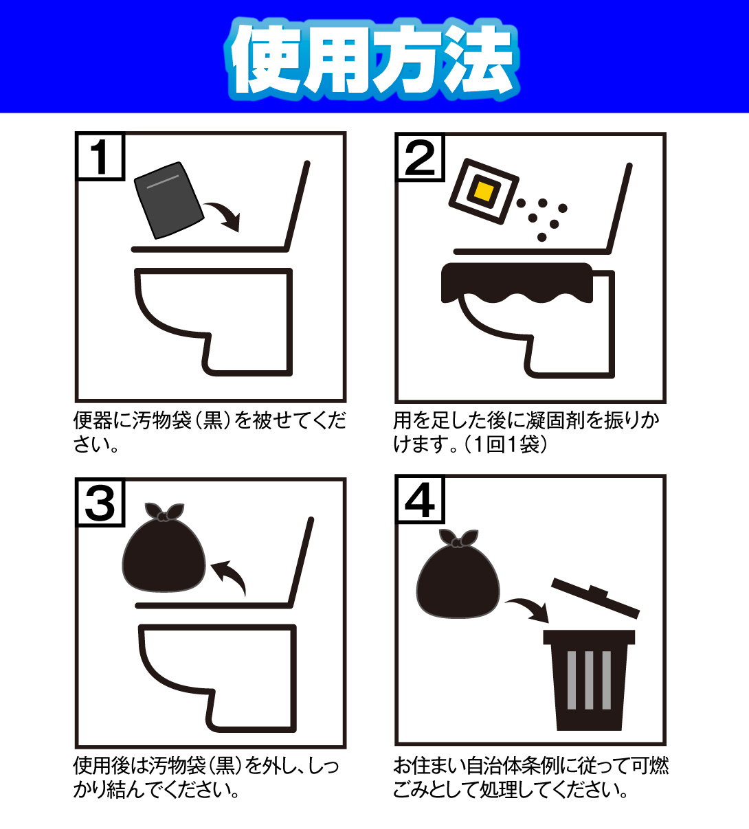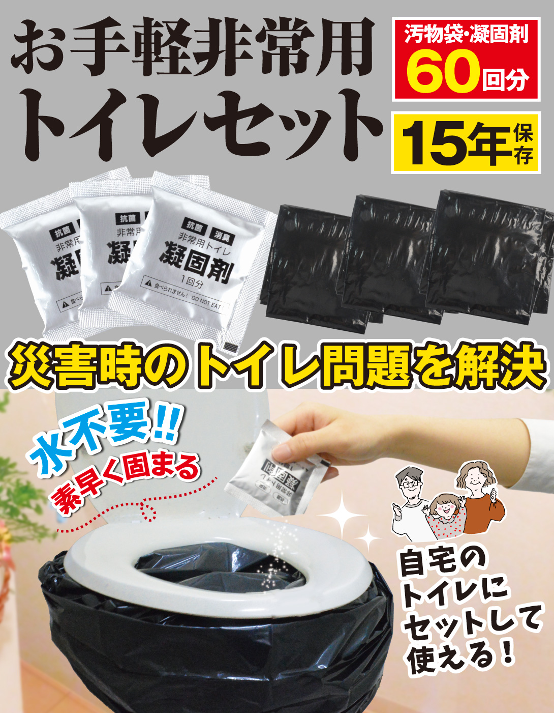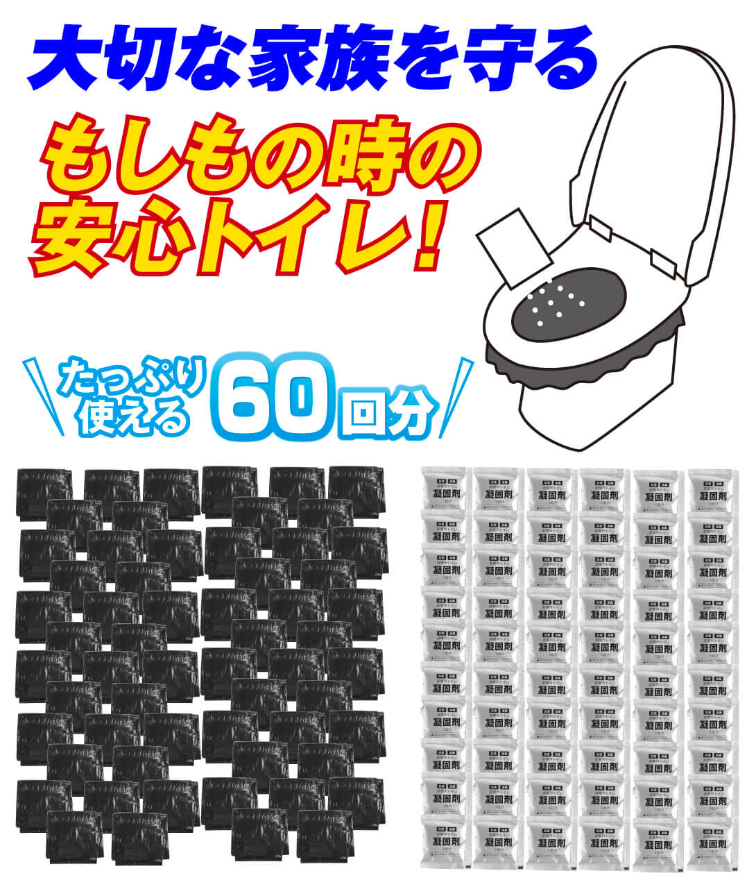 凝固剤(高吸水性樹脂)60袋、汚物袋60枚、取扱説明書