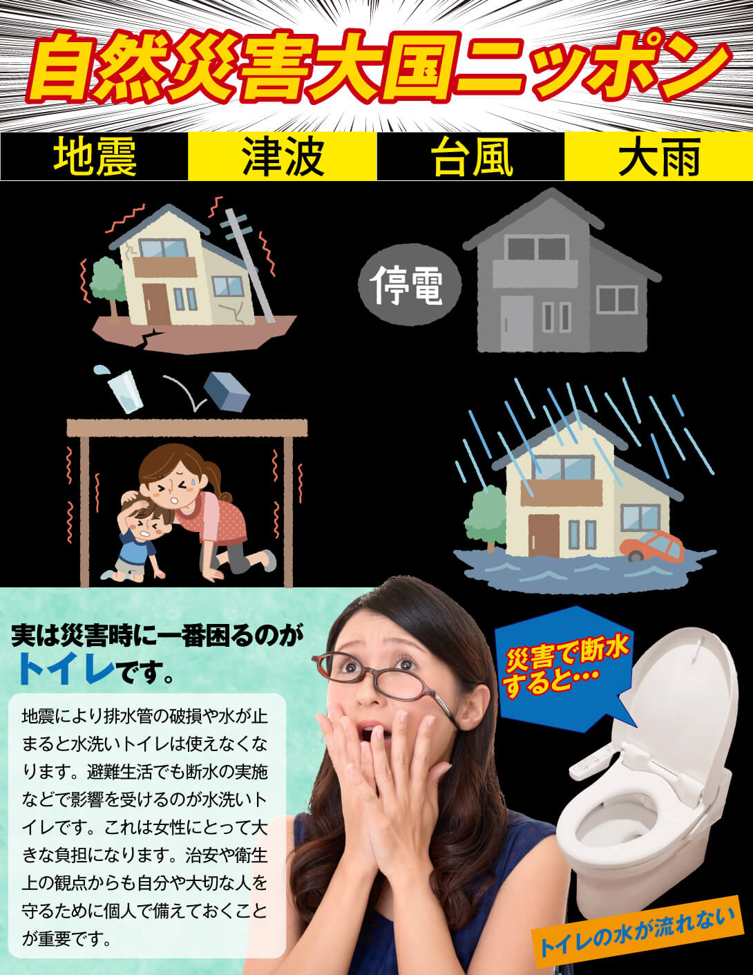 緊急時の備えはもちろん、自宅のトイレにセットして使えます。