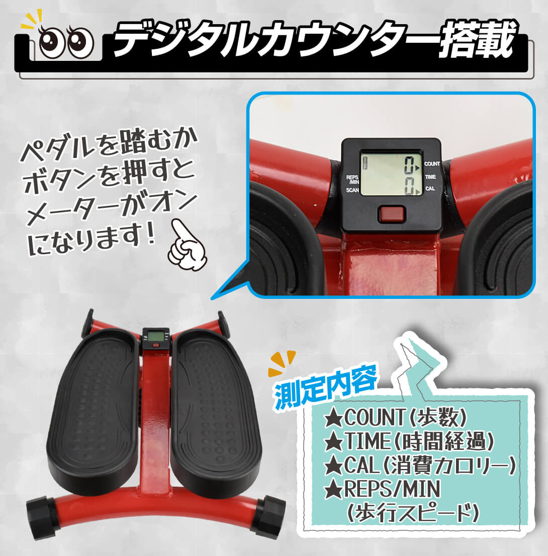 デジタルカウンター搭載!歩数や消費カロリーなどを測定できます。