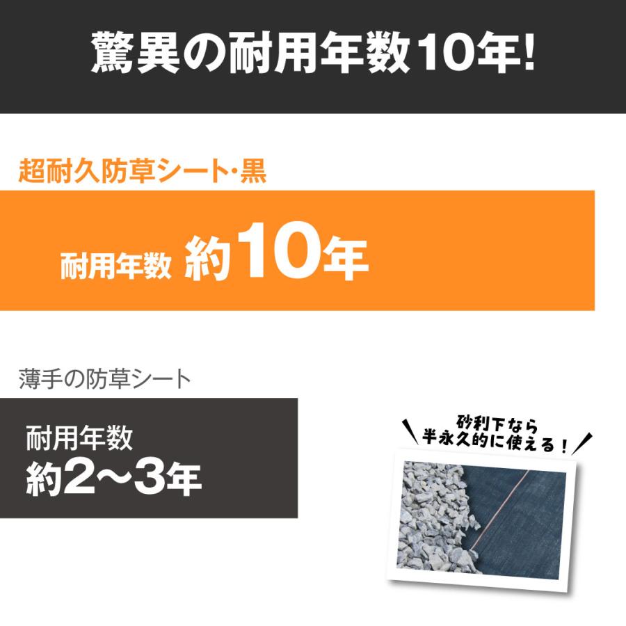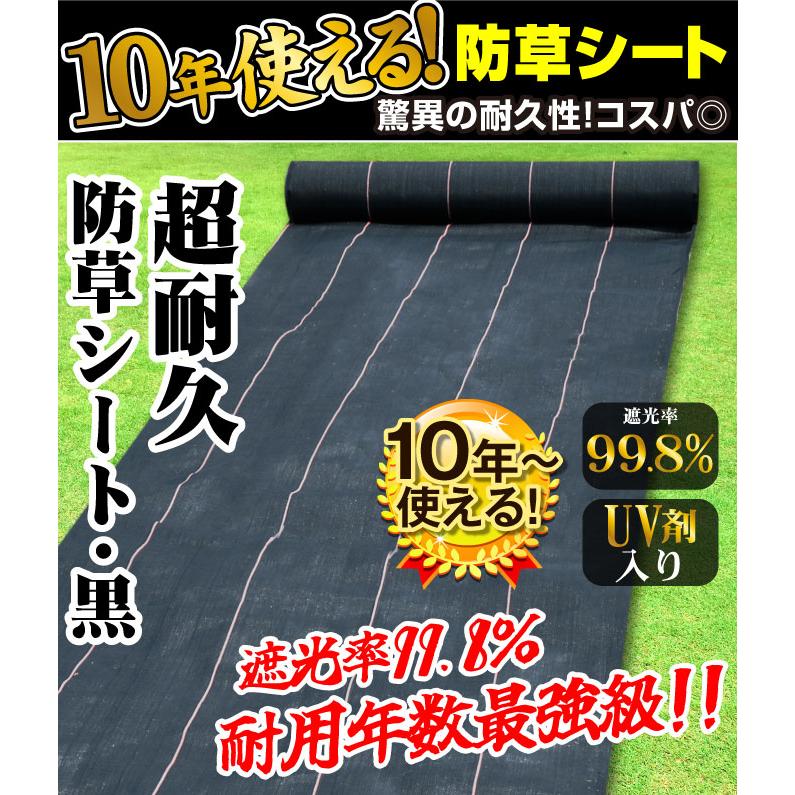超耐久防草シート・黒 防草シート 除草 雑草 芝生 草 DIY 耐用年数 10年 厚さ0.7mm 砂利下 人工芝