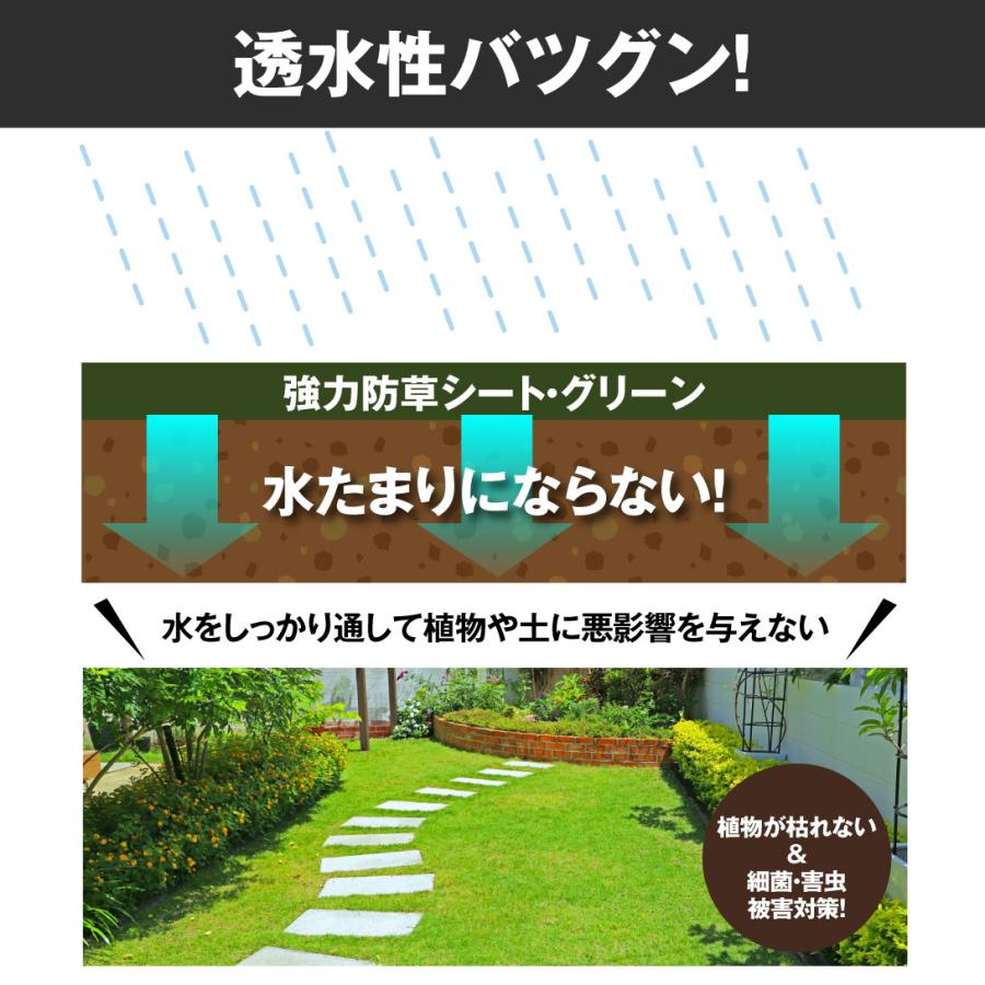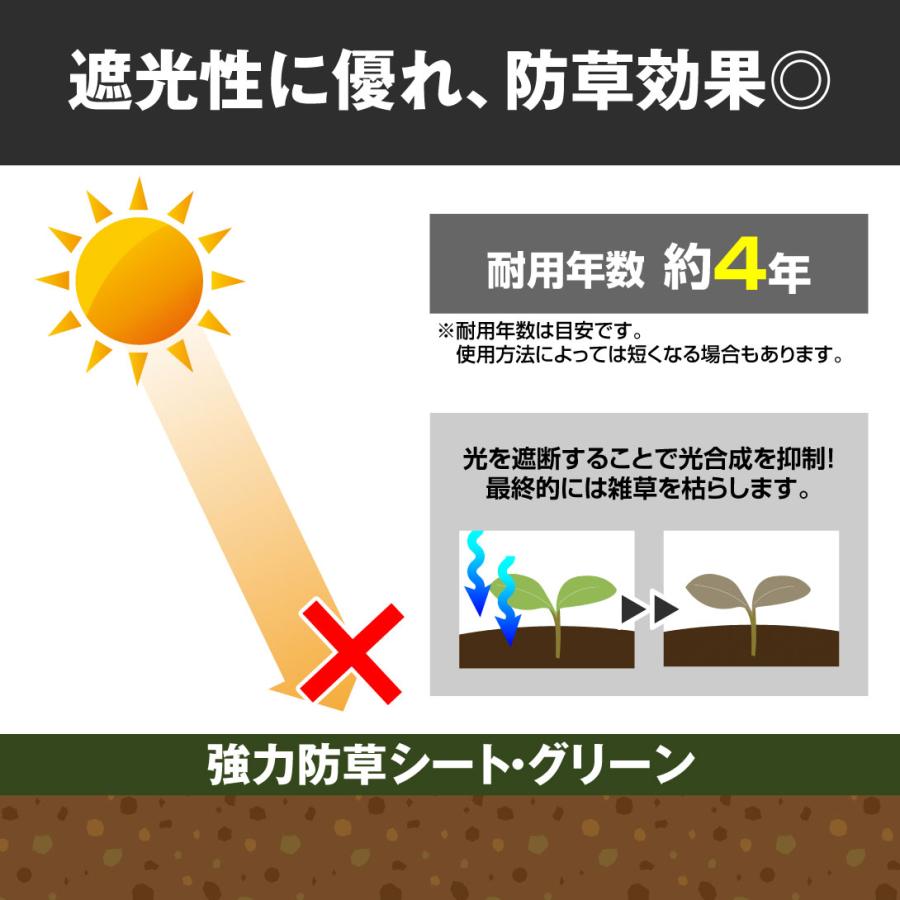 太陽の光をしっかり遮断し、雑草の発生を防ぎます。耐用年数4年と長いので、何度も張り替える必要ナシ!